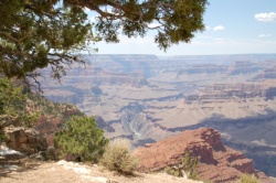 Selecteer het gewenste hoofdstuk: | Inleiding | Voorbereiding | De reis | Napret | Fotoserie(via Picasaweb) | en selecteer een subhoofdstuk: | Schiphol | Overstappen | Aankomst LA | Dag 2 | Dag 3 | Dag 4 | Dag 5 | Dag 6 | Dag 7 | Dag 8 | Dag 9 | Dag 10 | Dag 11 | Dag 12 | Dag 13 | Dag 14 | Dag 15 | Dag 16 | Hands up.... Anja was al om 05.30 wakker van het gestommel van de bovenburen. Ze besloot er ook maar uit te gaan en heeft foto's genomen van de zonsopkomst. Het was meteen goed te zien dat deze dag veel minder helder zou zijn met veel damp tussen de canyons. In het kader van "we gaan toch niet weer zoveel lopen hè" nemen we vandaag het busje naar Yaki Point via de Kaibab Trail Route. Eigenlijk zou je een muilezel tocht moeten maken tot op de bodem van de Canyon maar daar is geen tijd voor aangezien de trein vanmiddag om 14.30 uur alweer vertrekt. Vlak bij Bright Angel kan je heerlijk op een muurtje zitten met goed uitzicht over de canyon. Hier wordt je ook getrakteerd op perfect zicht op de Condors. Deze joekels van vogels zijn allemaal genummerd en zitten vlak bij op een rots of komen heel statig aanvliegen/zweven. De trein terug was nu voorzien van een echte stoomlocomotief die samen met een gewone locomotief de wagons terug naar Williams zal brengen. De trein is te zwaar voor 1 locomotief. Dat is heel jammer want exact halverwege de rit stopt de rit. De stoomlocomotief had het begeven. "5 minuutjes, dan zijn we weer op rit", sprak de conducteur. 2 uur later waren we eindelijk gekoppeld aan de 1,5 uur later vertrokken trein achter ons en werd de rit nu met 3 locomotieven en 19 wagons voortgezet. Een paar mijl voor Williams kwam de trein weer tot stilstand. Dit keer vanwege een 'overval' door 2 cowboys te paard. In alle coupes mocht iedereen zijn kleingeld inleveren. "Is dat alles wat je hebt?" vroeg de cowboy aan Anja. Zij zei ja en kreeg prompt een handje kleingeld terug... Door de ongeplande pauze waren we laat in Williams. Dat was jammer omdat er nog een tocht van 90km over zeer mooie wegen zou volgen door Red Rock Country. De route was waarschijnlijk allemachtig prachtig maar in het donker is er dus niets van te zien. ![]()